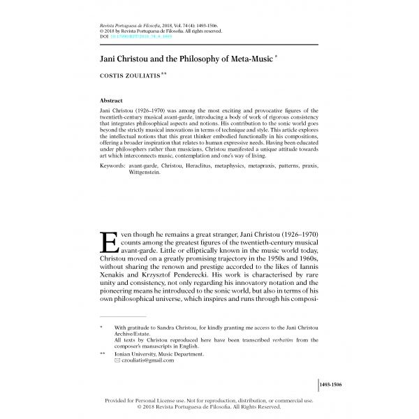 Costis Zouliatis, “Jani Christou and the Philosophy of Meta-Music,” Revista Portuguesa de Filosofia 74, no. 4 (2018): 1493–1506, https://doi.org/10.17990/RPF/2018_74_4_1493.