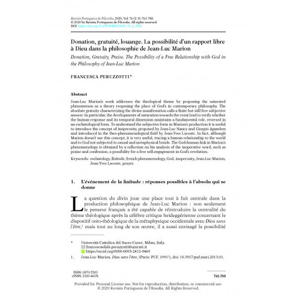 Gabellieri, Emmanuel, ‘Paradoxe, univocité, analogie.’ In Philippe Capelle-Dumont, Philosophie de Jean-Luc Marion. Phénoménologie, théologie, métaphysique, 31-50. Paris: Hermann, 2015.