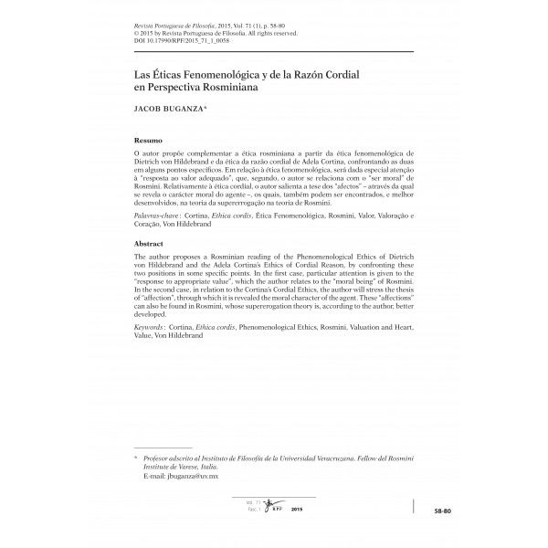 Buganza, Jacob. “Las Éticas Fenomenológica y de la Razón Cordial en Perspectiva Rosminiana.” Revista Portuguesa de Filosofia, Fenomenologia e Filosofia Prática = Phenomenology and Practical Philosophy, 71, no. 1 (2015): 58–80. doi:10.17990/RPF/2015_71_1_0058