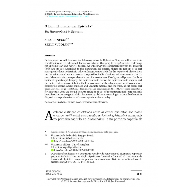 Aldo Dinucci and Kelli Rudolph, “O Bem Humano em Epicteto,” Revista Portuguesa de Filosofia 77, no. 1 (2021): 21–46, https://doi.org/10.17990/RPF/2021_77_1_0021.