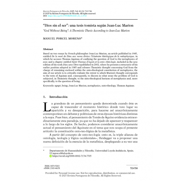 Manuel Porcel Moreno, “‘Dios sin el ser’: una tesis tomista según Jean-Luc Marion,” Revista Portuguesa de Filosofia 81, no. 3 (2025): 713–38, https://doi.org/10.17990/RPF/2025_81_3_0713.