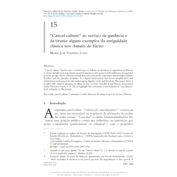 Dudenhoefer, Nicole. “Is Cancel Culture Effective?”, in Pegasus, The Magazine of the University of Central Florida, 2020. Acedido a 30/09/2024 em https://www.ucf.edu/pegasus/is-cancel-culture-effective/