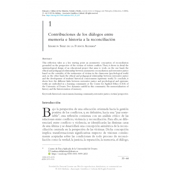 Bermudez, Angela y Sáez de la Fuente, Izaskun. Contribuciones de la educación histórica a la deslegitimación de la violencia de motivación política. Bilbao: Universidad de Deusto, 2020.
