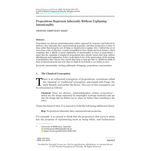 Tristan Grøtvedt Haze, “Propositions Represent Inherently Without Explaining Intentionality,” Revista Portuguesa de Filosofia 81, no. 4 (2025): 1163–72, https://doi.org/10.17990/RPF/2025_81_4_1163.