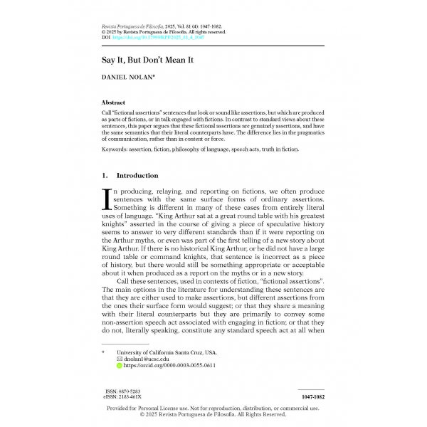 Daniel Nolan, “Say It, But Don’t Mean It,” Revista Portuguesa de Filosofia 81, no. 4 (2025): 1047–82, https://doi.org/10.17990/RPF/2025_81_4_1047.